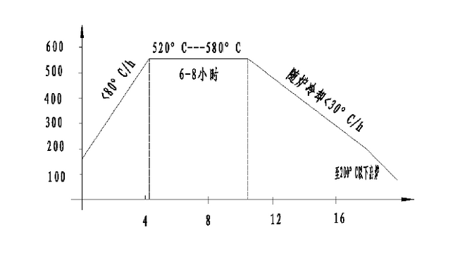為去除工件內應力,減少變形,對有些工件外協時效處理,具體工藝見下圖曲線: