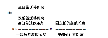 Rf即用每個帶的遷移距離除以溴酚藍前沿的遷移距離得到的。 測量位置應(yīng)在蛋白帶的中央。