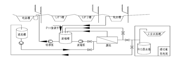 膜分離技術(shù)在涂裝前處理電泳廢水重復(fù)利用上,目前已廣泛應(yīng)用的技術(shù)有PT-RO、ED-RO、電泳超濾等,這些設(shè)備使涂裝質(zhì)量和環(huán)保等方面取得巨大成功,而目前出現(xiàn)的EUF系統(tǒng)是